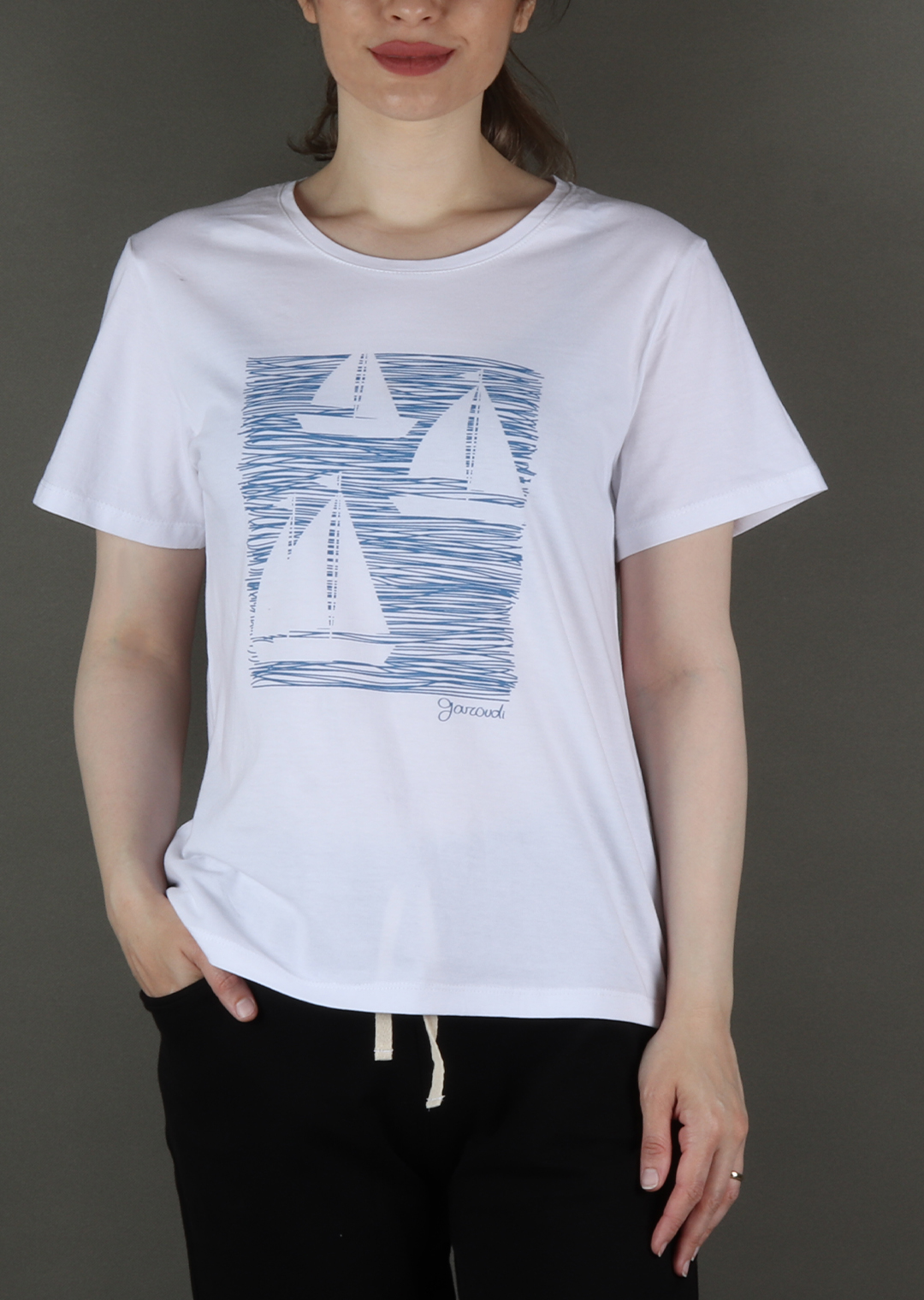 تی شرت زنانه آستین کوتاه چاپ قایق